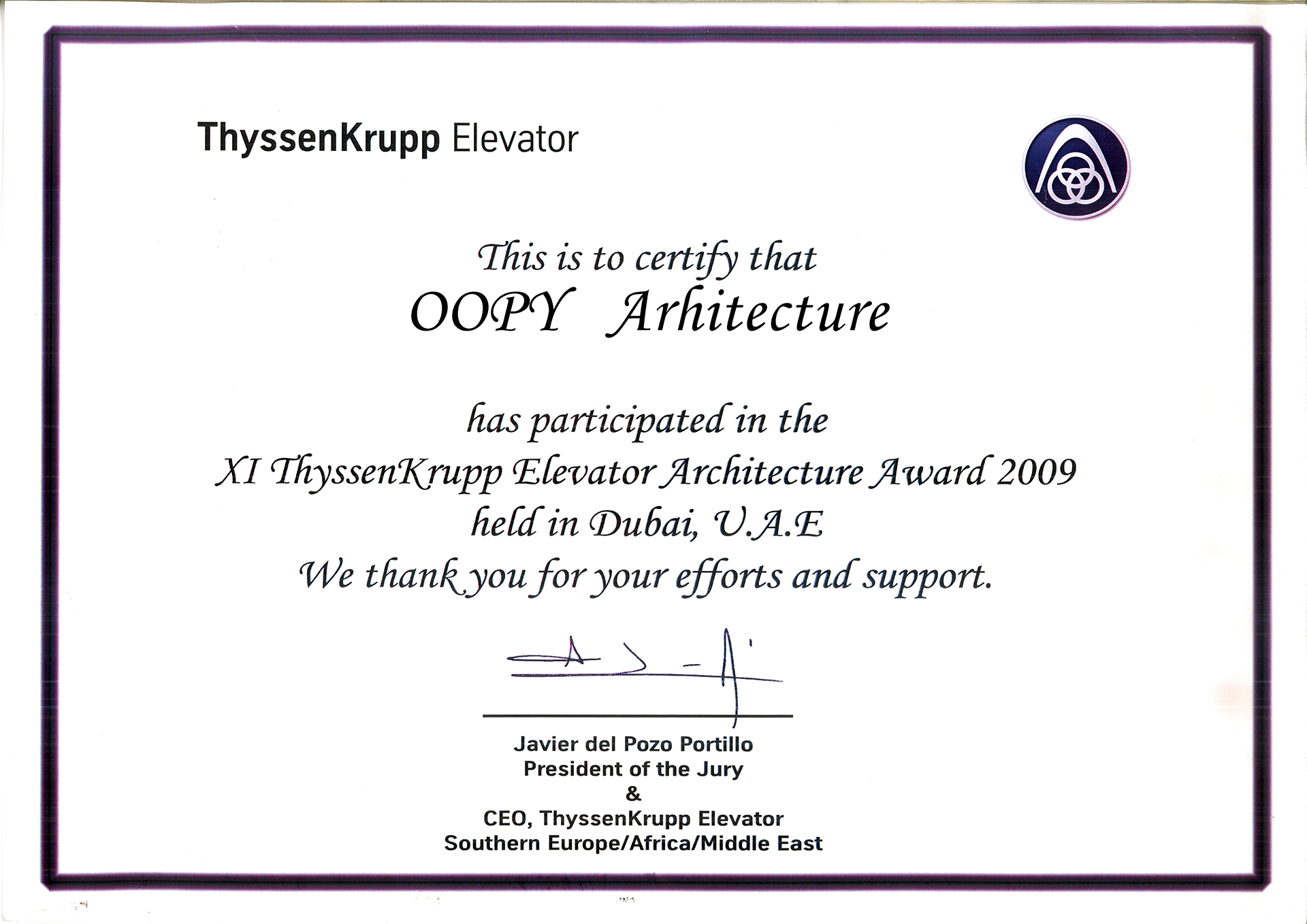 ThyssenKrupp Elevator Architecture Award Dubai 2009